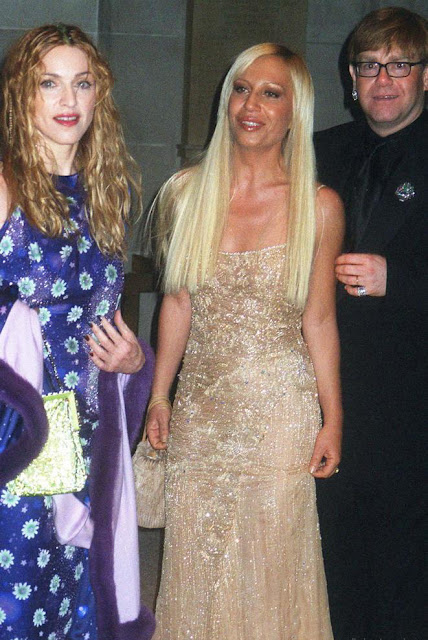 Madonna e celebridades em evento de gala promovido por Gianni Versace, meses antes de seu assassinato, ano de 1997.