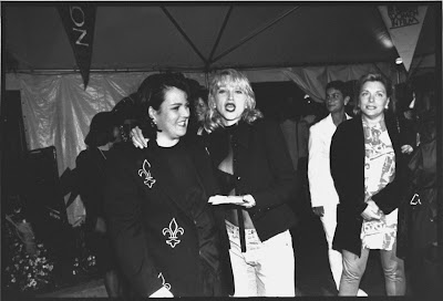 Madonna na Premiére do filme A league of their own (Uma equipe muito especial), em 25 de junho de 1992, com elenco do filme e grudada em sua nova amiga de infância, Rosie O'Donnel.